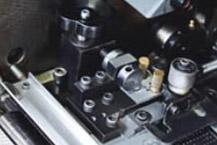 | Transmission System Transmission system - a large modulus helical gear accurately maintains transmissions and reduces noise. The lay-on roller is designed for stability and durability with high-speed printing. |